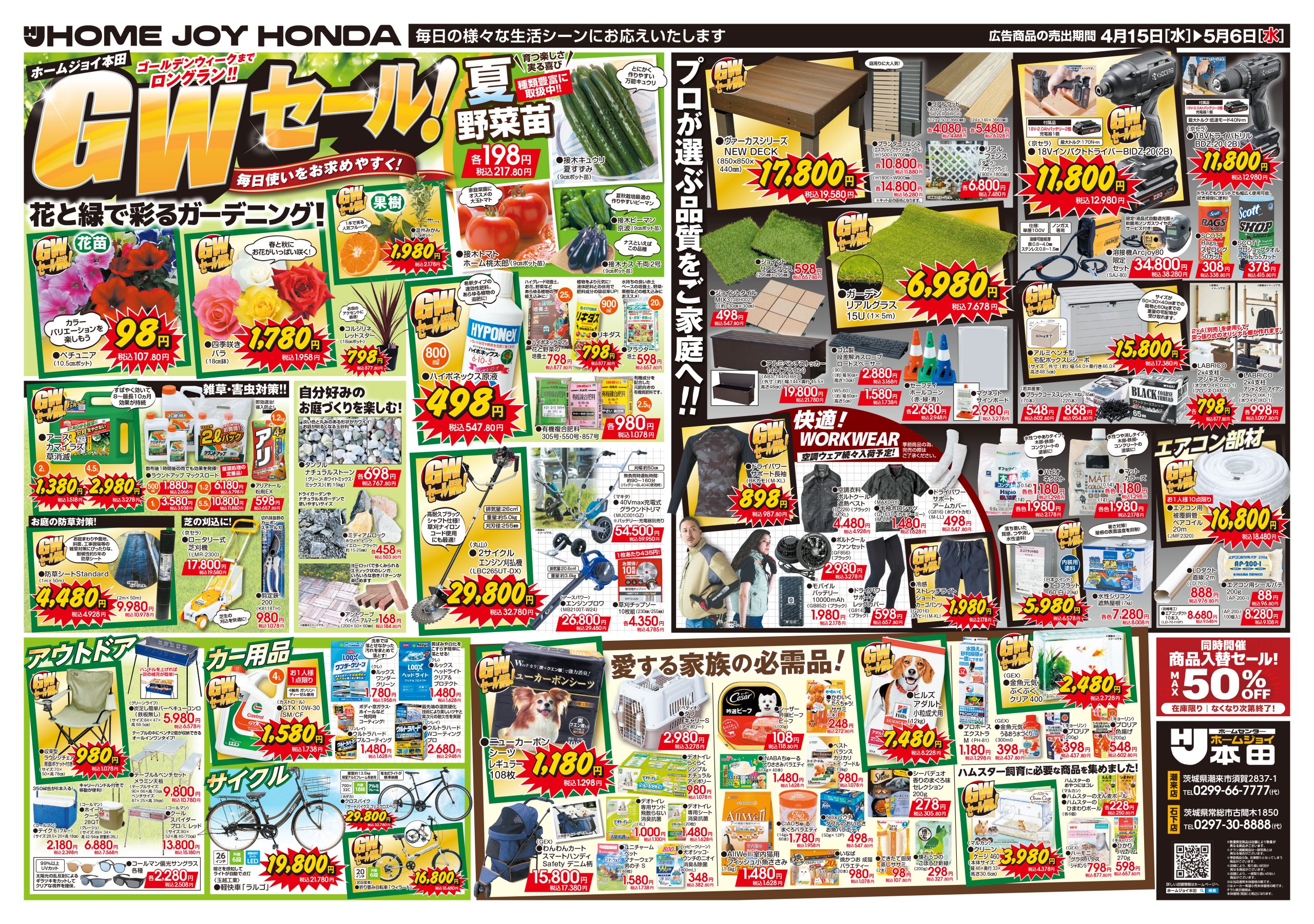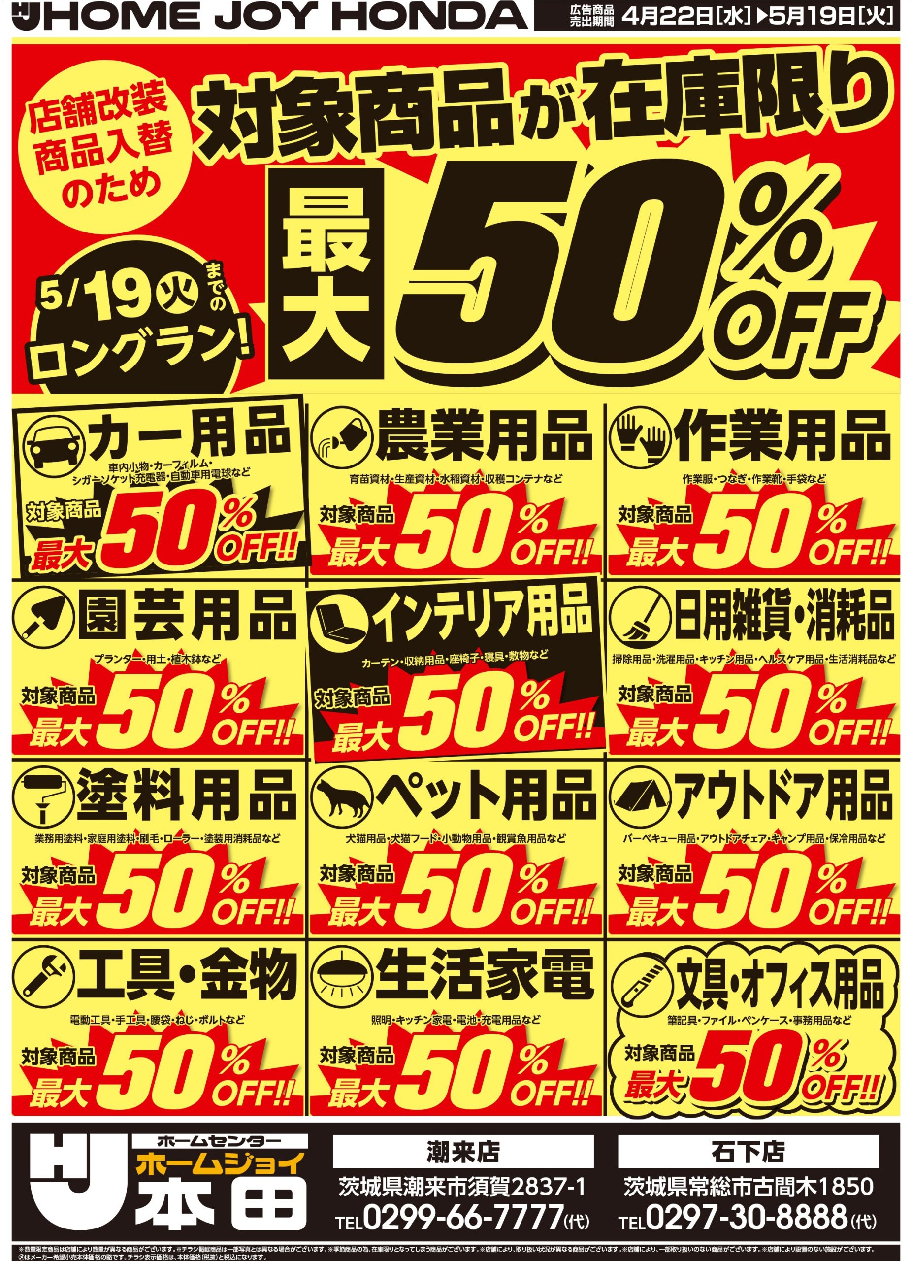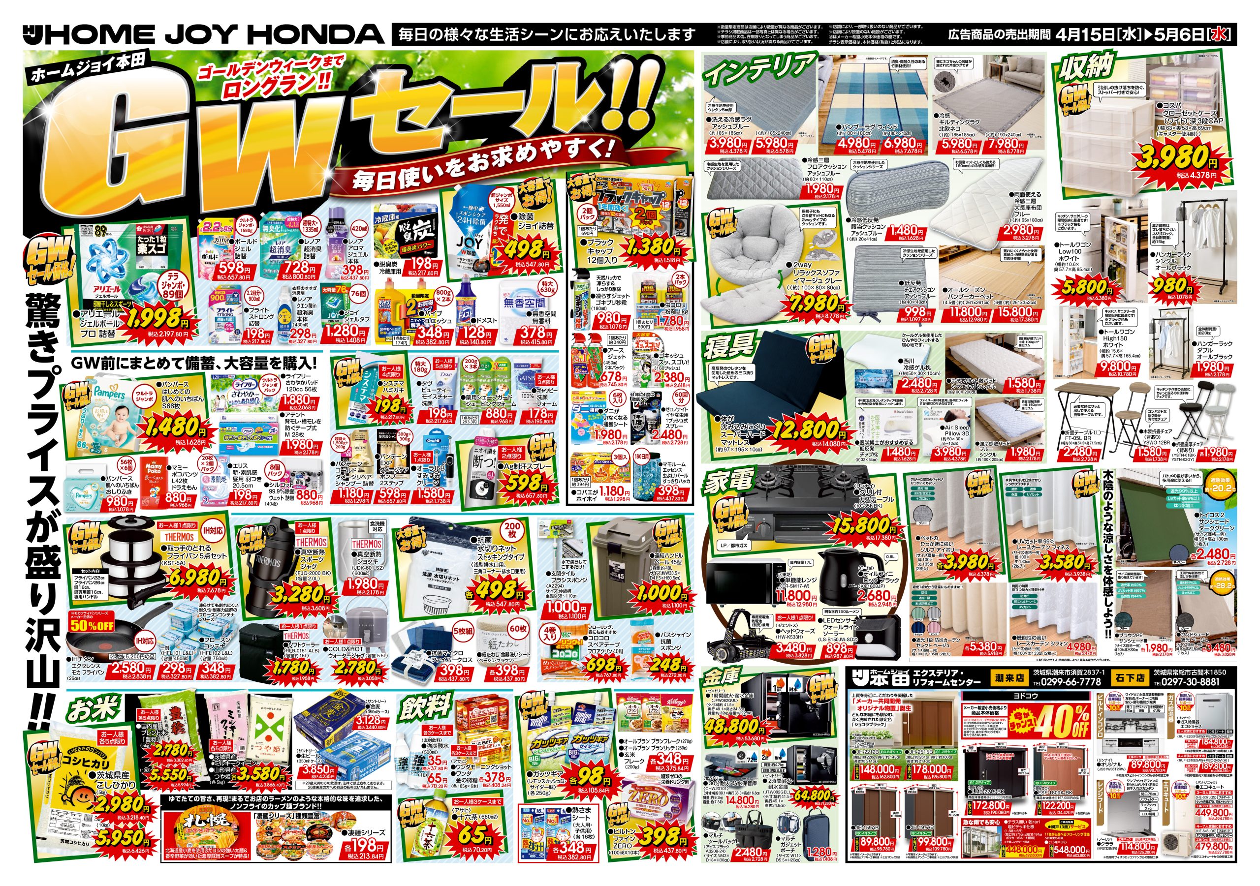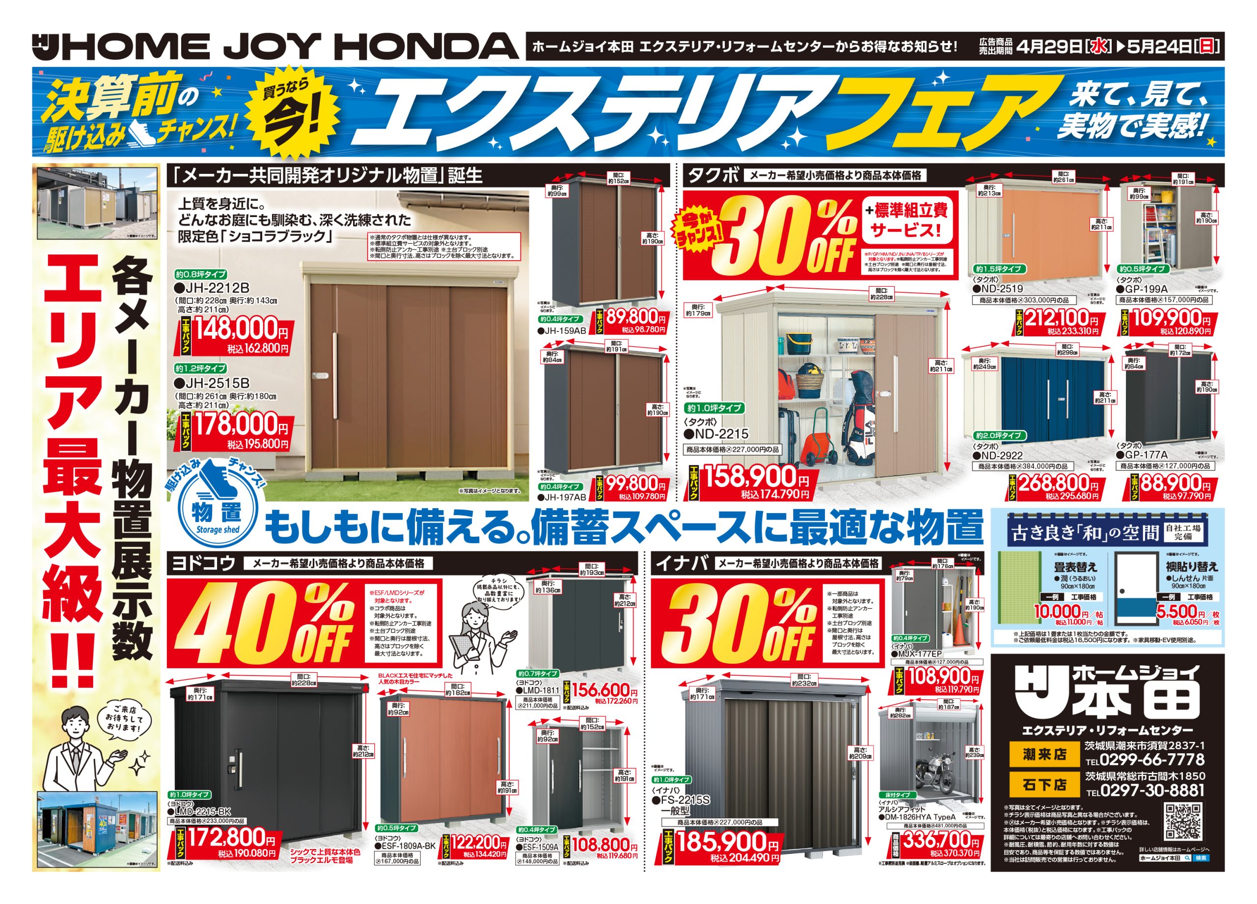 ホームセンターとしてホームジョイ本田 潮来店、ホームジョイ本田 石下店の2店を展開。通常のホームセンターの倍以上となる商品アイテム数を誇るプロユースにも応える広くて深い品揃えを特色とし、特に木材販売事業を手がけているアドバンテージを活かした資材部門では建築関係のプロからも高い評価を得てきました。両店ともにエクステリア・リフォームセンターを併設し、住まいの外観を彩るエクステリア、ライフスタイルの変化に合わせて内外装を変えるリフォームについても事業を展開しています。